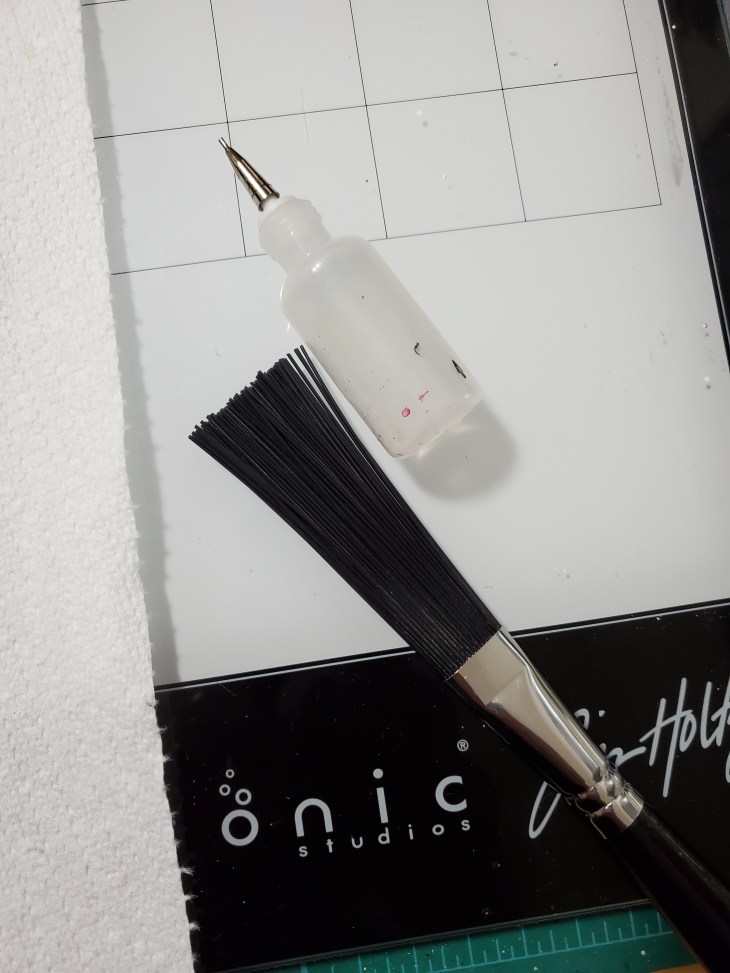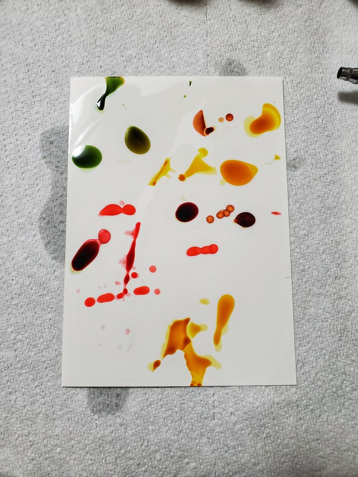 Using my splatter brush and isopropyl achohol I created a few spots on to the panel.
